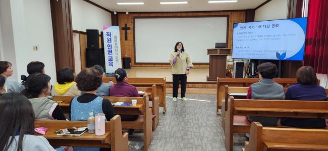 Á¸ Á¾»çÀÚ¸¦ ´ë»óÀ¸·Î ÀαDZ³À°À» ½Ç½ÃÇÏ¿´½À´Ï´Ù. ¡¸Àαǰú ȸº¹ÀÇ ´«À¸·Î º¸´Â º¹Áö½Ã¼³ÀÇ ÀÏ»ó¡¹À» ÁÖÁ¦·Î ÃÑ 4½Ã°£ÀÇ ±³À°À» ÁøÇàÇÏ¿´À¸¸ç, º¹Áö½Ã¼³ ÇöÀå¿¡¼ÀÇ À뱂 °¨¼ö¼ºÀ» ³ôÀ̰í Á¾»çÀÚ ½º½º·ÎÀÇ ±Ç¸®¿Í ¿ªÇÒÀ» µ¹¾Æº¸´Â ½Ã°£À» °¡Á³½À´Ï´Ù. ¶ÇÇÑ ÀÎ±Ç Ä£ÈÀûÀÎ Á¶Á÷ ¹®È Á¶¼º°ú °Ç°ÇÑ µ¹º½ ȯ°æ ¸¶·ÃÀÇ Á߿伺À» ÇÔ²² ÀνÄÇÏ´Â °è±â°¡ µÇ¾ú½À´Ï´Ù.