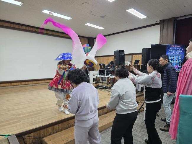 µé±¹È °ø¿¬´ÜÀÇ ÀÚ¿øºÀ»ç °ø¿¬À» ÁøÇàÇÏ¿´½À´Ï´Ù. °í°íÀ屸, »ö¼ÒÆù ¿¬ÁÖ, ³ë·¡ °ø¿¬, Çѱ¹¹«¿ë, ´ëÁß°¡¿ä µî ´Ù¾çÇÑ ¹«´ë¸¦ ÅëÇØ °ÅÁÖÀε鿡°Ô dz¼ºÇÑ ¹®È ÇâÀ¯ÀÇ ±âȸ¸¦ Á¦°øÇÏ¿´À¸¸ç, Áñ°Å¿ò°ú Ȱ·ÂÀ» ³ª´©´Â ½Ã°£ÀÌ µÇ¾ú½À´Ï´Ù.
